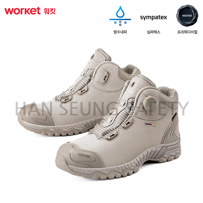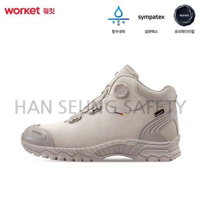 -먼지가 많은 작업 환경을 고려한 더스트 컬러 배색과 심플하고 베이직한 디자인이 돋보이는 6인치 안전화로 견고하지만 부드러운 특성을 갖춘 최고급 천연소가죽과 뛰어난 방수, 투습 성능을 가진 심파텍스 소재를 사용하여 다양한 작업 환경과 조건에서 최적의 방수와 편안한 착용감을 제공합니다.