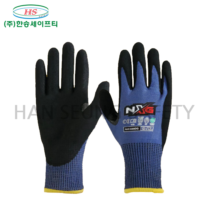 -손상이 쉬운 부위에 두꺼운 코팅으로 보강하고 니트릴샌딩 코팅으로 높은 내구성과 그립력 강화.