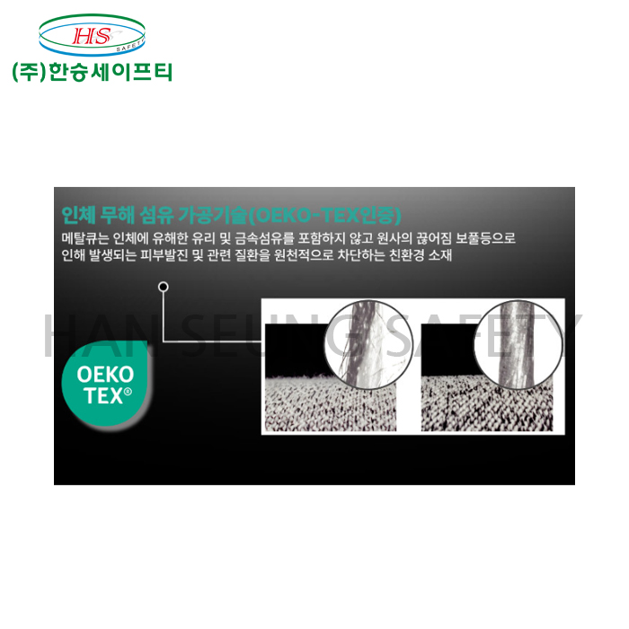 -인체 무해 섬유 가공기술(OEKO-TEX인증) 메탈큐는 인체에 유해한 유리 및 금속섬유를 포함하지 않고 원사의 끊어짐 보풀등으로 인해 발생하는 피부발진 및 관련 질환을 원적으로 차단하는 친환경 소재.