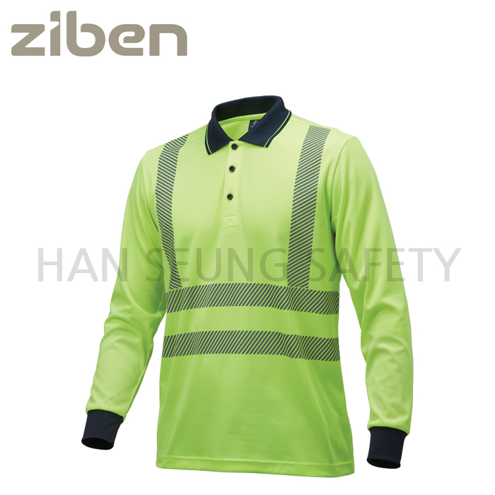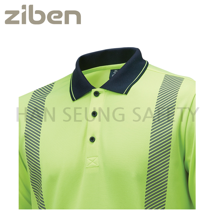 -폴로 카라 셔츠 스타일의 긴소매 안전 티셔츠.