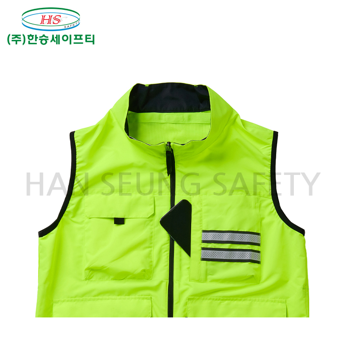 -형광색 원단과 재귀반사 테이프 적용으로 가시성 강화.