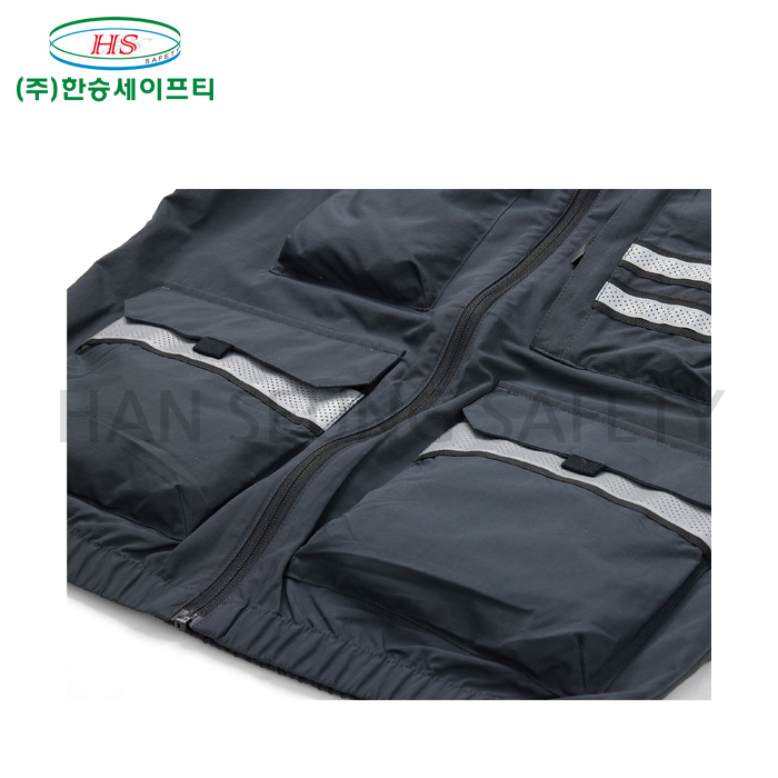 -뒤 목부분에 아이스팩 포켓 부착. 아이스팩 삽입시 팬과 결합하여 착용자의 체온을 더 낮춰주는 기능성 베스트.