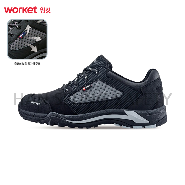 -한국인의 체형에 잘 맞는 신골(라스트)은 착화감을 더욱 향상시키며 측면의 넓은 통기성 구조는 내부의 공기순환을 통하여 땀 발생을 최소화하고 냄새 및 각종 세균 증식을 억제하는 효과가 뛰어납니다.