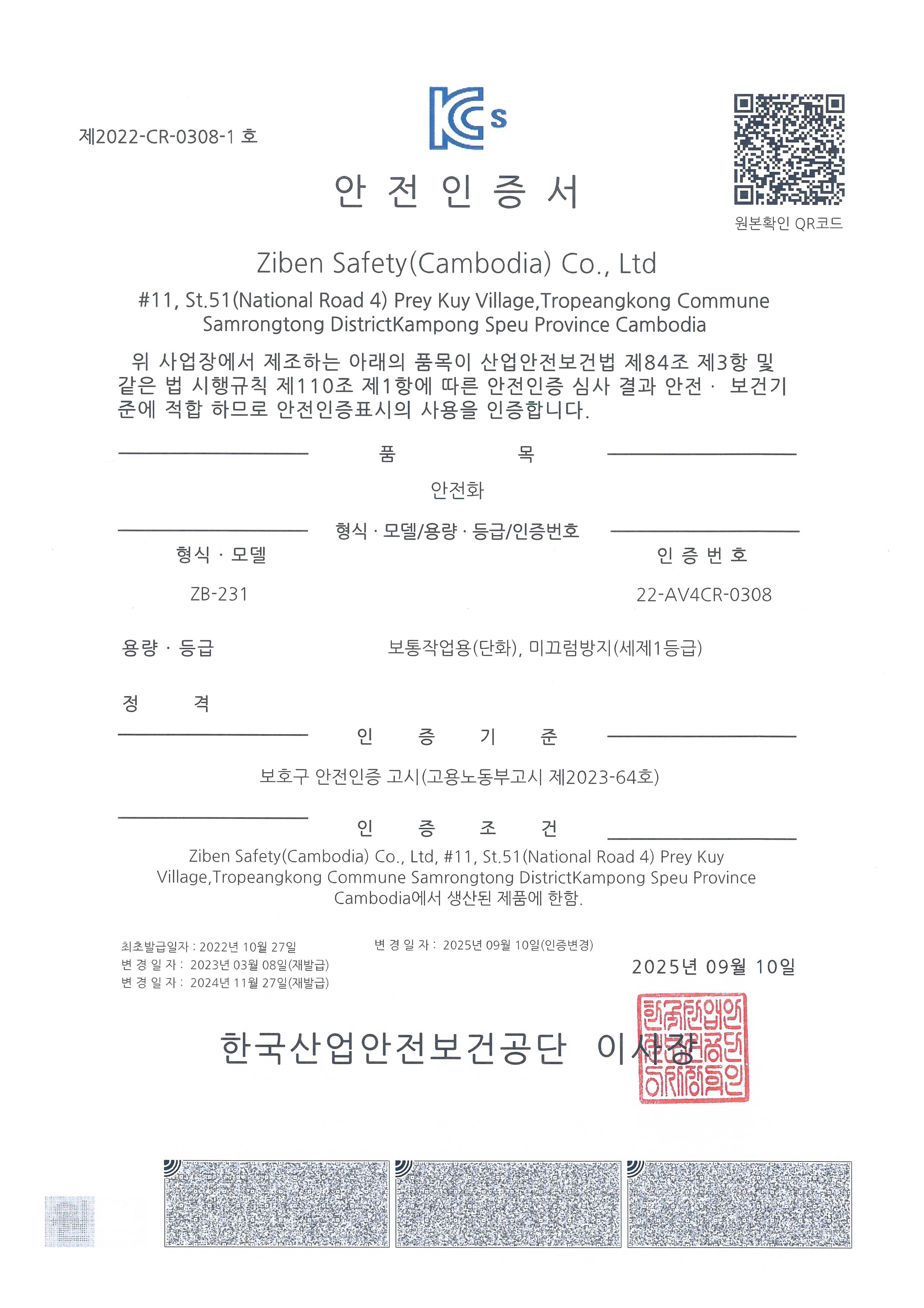 -한국산업안전보건공단 미끄럼 방지 성능 세제 1등급 인증